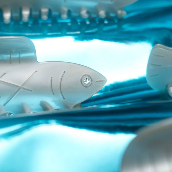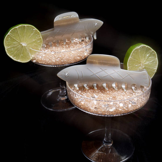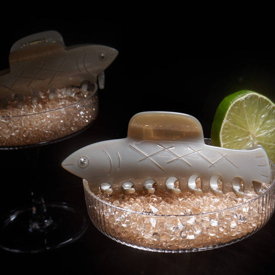 Herring Fish Silver Acetate Hair Claw with Rhinestone Eye