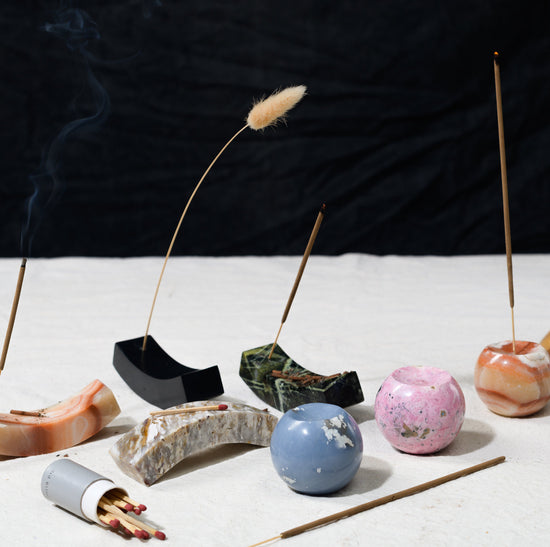 Gemstone sphere incense holder Serpentine green