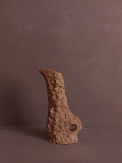 handbuilt terracota stoneware vase, unglazed, not watertight | h. 22 cm., w. 12,5 cm.