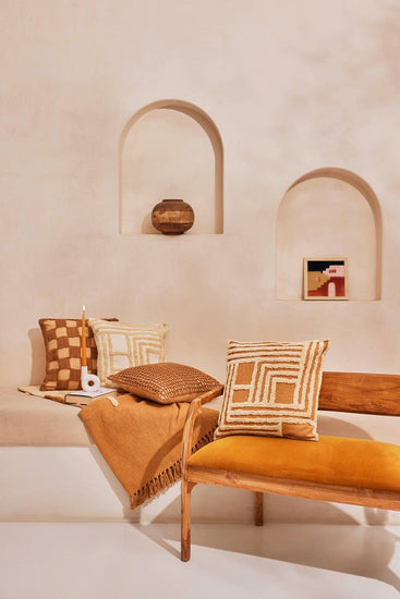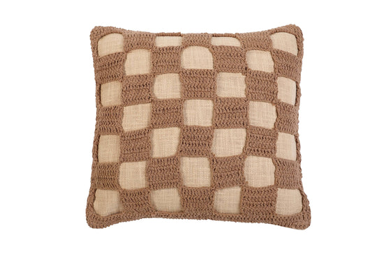 Crafted with meticulous care, the Tarika Checkered Crochet Accent Cushion features a beautiful checkered pattern created using intricate crochet techniques. The beige color palette adds a touch of warmth and versatility, effortlessly blending into any interior style.