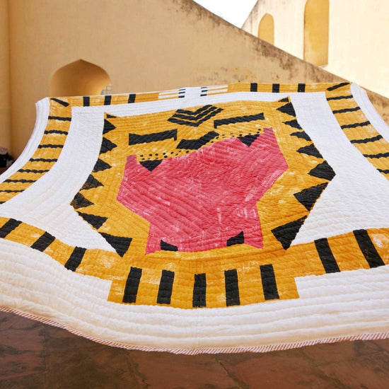 Channel your inner strength with this beautiful handmade quilt inspired by the elegant and powerful Indian Tigress. Our quilts are made in small batches.